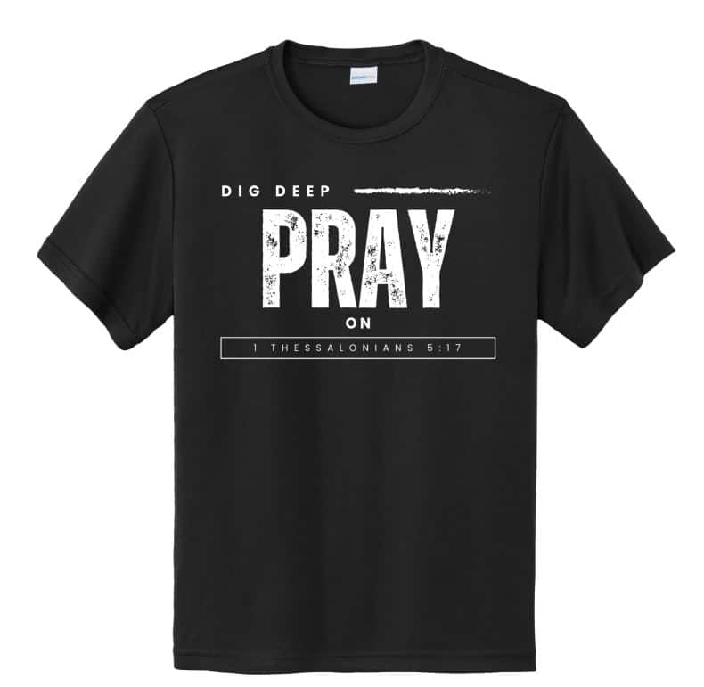 Experience a source of inspiration and spiritual guidance with 'Dig Deep Pray On.' This design offers the incredible reminder to pray without ceasing. Athletes, let this be your companion through trials and tribulations, guiding you towards your inner strength.